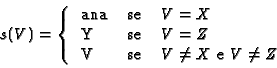 que à variável X associa o termo ana, à variável Z associa