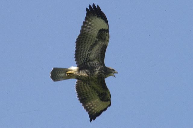 família de cinco Buteos voa em círculos emitindo sons estridentes, num