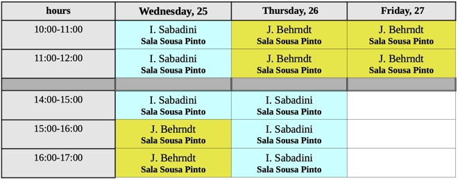 Lectures will take place in the Room Sala Sousa Pinto, 2nd floor of DMat (room equipped with beamer, projector, computer, and white board)